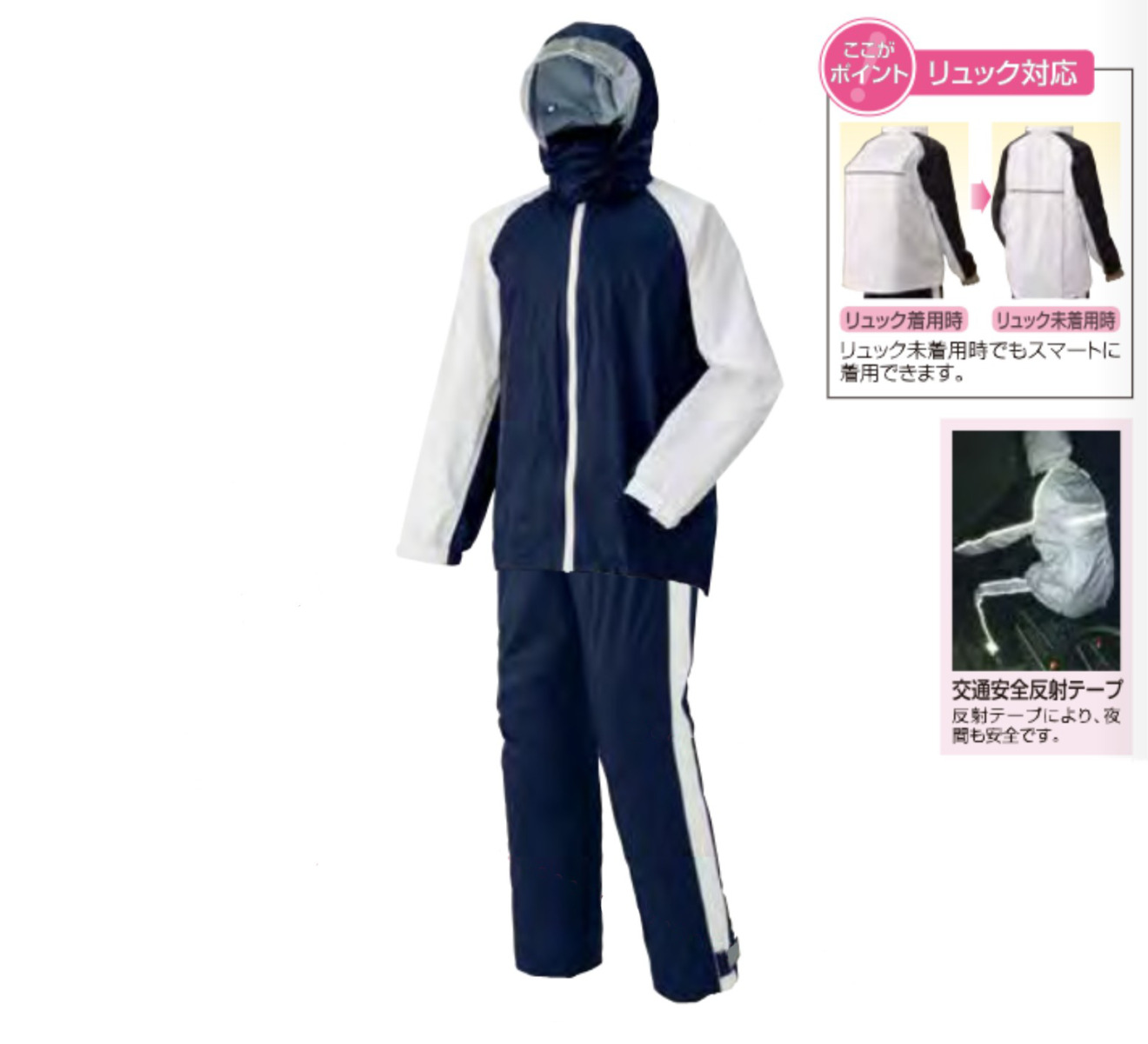商品名 レインスーツ 男性用 リュック型 上下